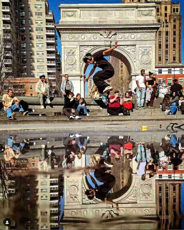 You can take the temperature of a city...that is...you can get a sense of the level of joy a city is experiencing by walking through one of the city's parks - in this case...Washington Square and I'd have to say...based on this photo...the joy level is level @splifffffffffff - thats a new term named after the skateboarder in the photo - pass it on - joy level Spliffo...yeah I like the sound of that.